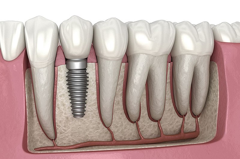Dental implants are surgically placed into the jawbone. Over time, they integrate with the bone through a process called osseointegration. Once fused with the bone, they provide a stable anchor for dental prosthetics.