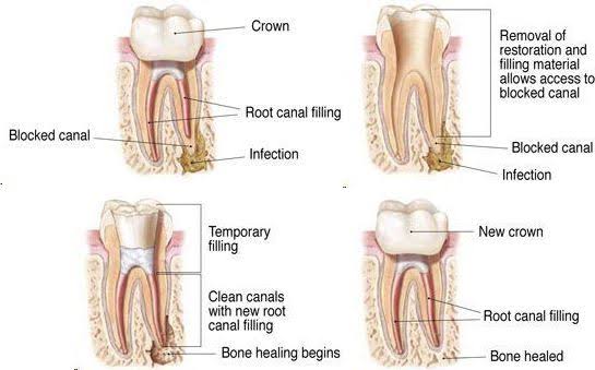 During Re-RCT, the dentist or endodontist re-enters the tooth, removes the existing root canal filling material, thoroughly cleans and reshapes the root canals, removes any remaining infected or damaged tissue, and disinfects the canals. The canals are then refilled and sealed.